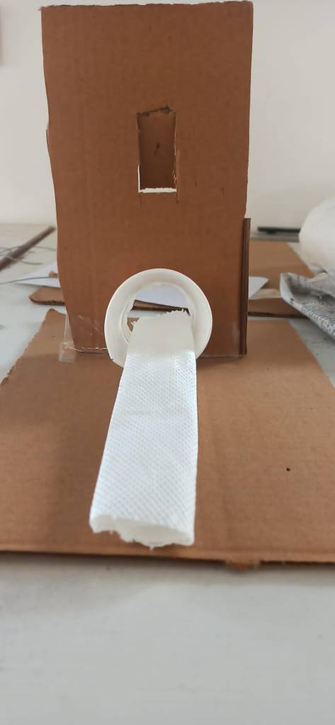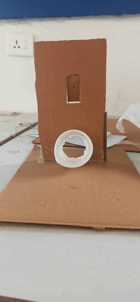 Following this, we made a model of a porch using a scrap piece of cardboard. For this exercise, we were supposed to use scaled measurements and make a miniature figure a.k.a a mini-me, that could access that space through the portal we created.